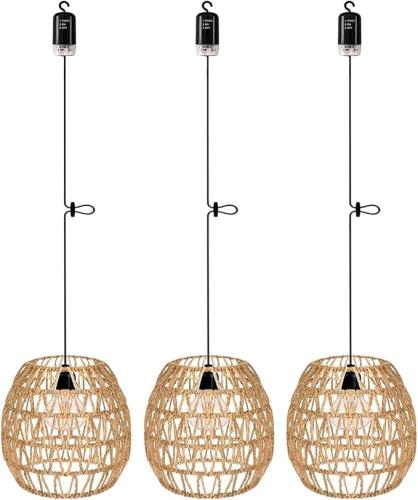 3 x Hanglamp van rotan Tuinlamp werkt met batterij