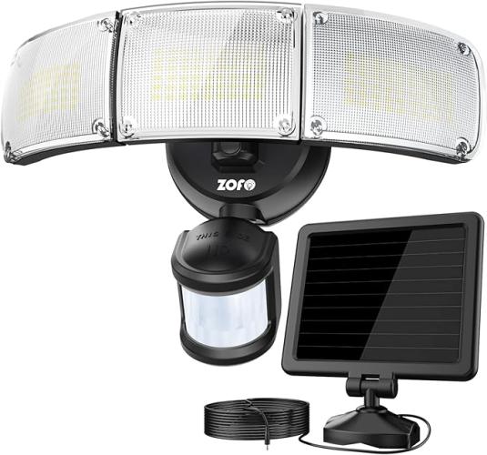 Ongeopend, ZOFO Zonnelamp voor buiten, 2300LM, met Bewegingsmelder, IP65 Waterdicht, 270 graden verlichtingshoek, wandlamp op zonne-energie voor in de tuin, met kabel van 5 meter, B0B3DWCK6X