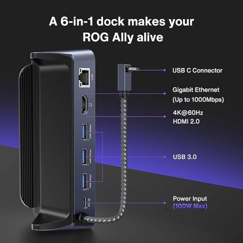 Ongebruikt, getest en werkend , ok, iVANKY ROG Ally Dock, 6-in-1 Hub Docking Station voor Steam Deck & ROG Alloy met HDMI 2.0 4K @60Hz, Gigabit Ethernet, 3 USB-A 3.0 en 100W opladen USB-C-aansluiting, compatibel met Valve Stream, B0CGWM48LS