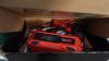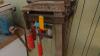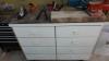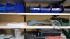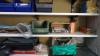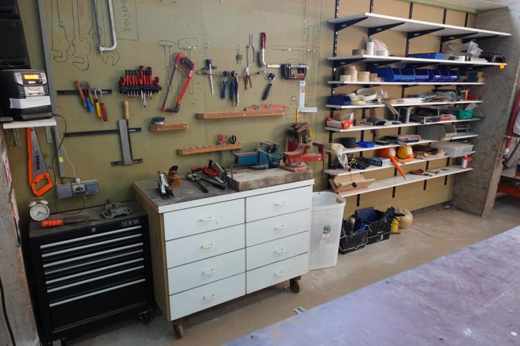 oa: werkkar HBM, meubel, werkmateriaal, radio, legplanken,...