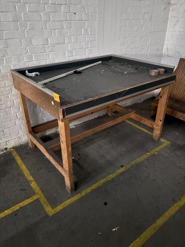 Partij houten karren zonder wielen + werktafel