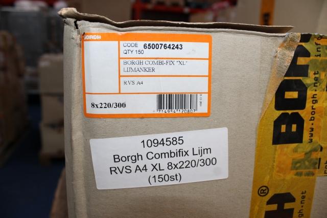 Ongebruikt, beschadigde verpakking, Borgh Combifix Lijm RVS A4 XL 8x220/300 (150 st)