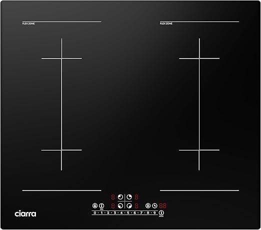 Ongebruikt, getest en werkend, volledig, ok, originele verpakking ontbreekt, CIARRA CBBIH4BFF 4 zones inbouw inductiekookplaat met twee flexzones power booster touch-bediening kookplaat inductie 4 platen 9 standen inductiekookplaat 60 cm 7200 W, B08JZ87VWL