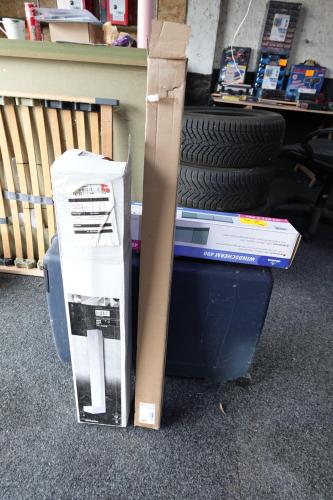 5 items, oa windscherm, koffer, rolgordijn, lamp en lattenbodem
