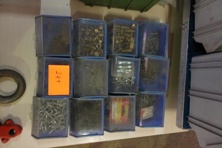 Bak met 12 bakjes vijzen, nagels e.d.