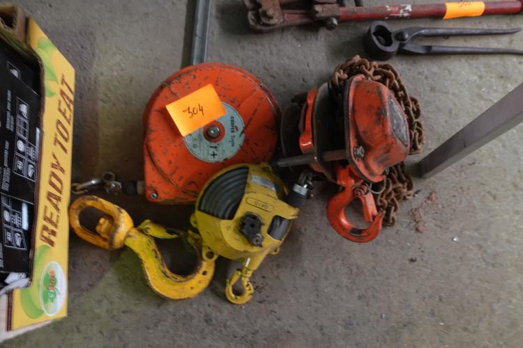 2 veerbalansen, 1 haak, 1 kettingtakel