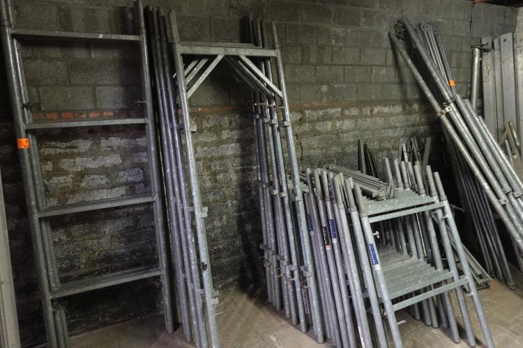 oa: plm: 40 voeten,75x diverse staanders, 4x kruisverbinding, 55x alu/galva loopplank,9x Galva doorloper, diverse ladderhaken, diverse verbindingsstukken inclusief de galva houders.