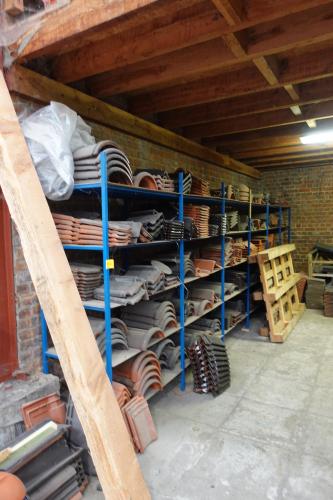 waaronder diverse "rest"paletten, leien,natuurleien,nokpannen,...