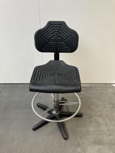 Materiaal rugleuning en zitting: Zacht PUR-schuim - Afmetingen rugleuning (BxH): 420x300mm - Kantelhoek rugleuning: -34° tot +30° - Kantelhoekverstelling met hendel - Hoogteverstelling met draaiwiel - Afmetingen zitting (BxD): 440x420mm - Kantelhoekzitting: - 14° tot + +5° - Kantelhoek en hoogte verstelling met hendel - Hoogtebereilk: 450 tot 640mm - Kunstof onderstel ø 630mm - Conditie: gebruiksporen maar in goede staat,