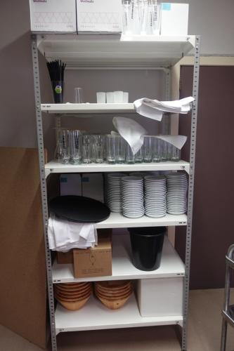 vv: verrijdbare kar , weegschaal rek , glazen , tassen , .... exl lot 169,170,171,172
