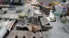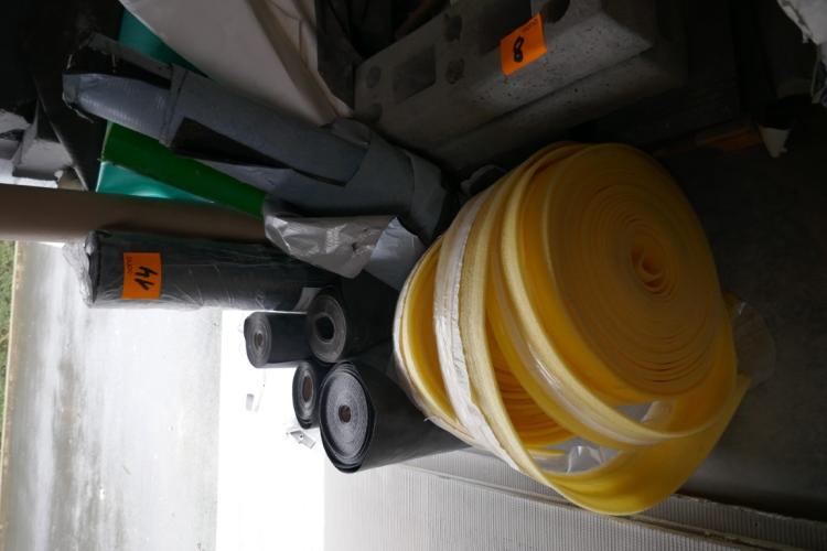 Rollen dakbedekking - dakpannen - bakstenen - vensterbanken - 2 stalen draagbalken - grijze bouwstenen -