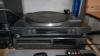 Vintage draagbare radio, stereo installatie, platendraaier, DVD speler en luidsprekers