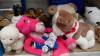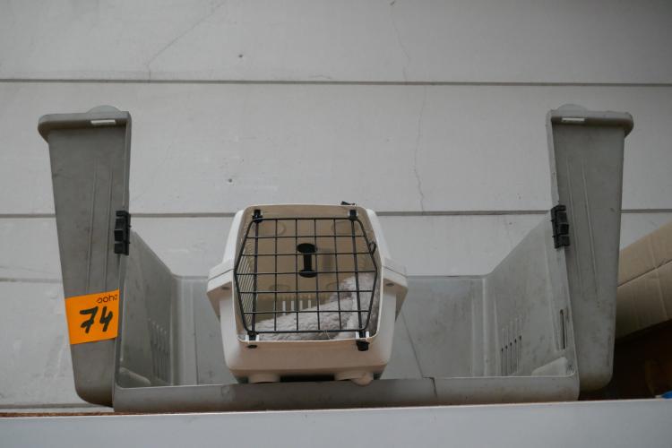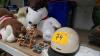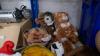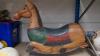 Diverse pluchen popjes - houten schommelpaard - plastieken speelgoedbox - kennel en hondenbak