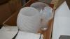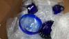 Glazen siervazen - blauw glaswerk - porseleinen borden en koffiekopjes - sierelijke glazen flessen