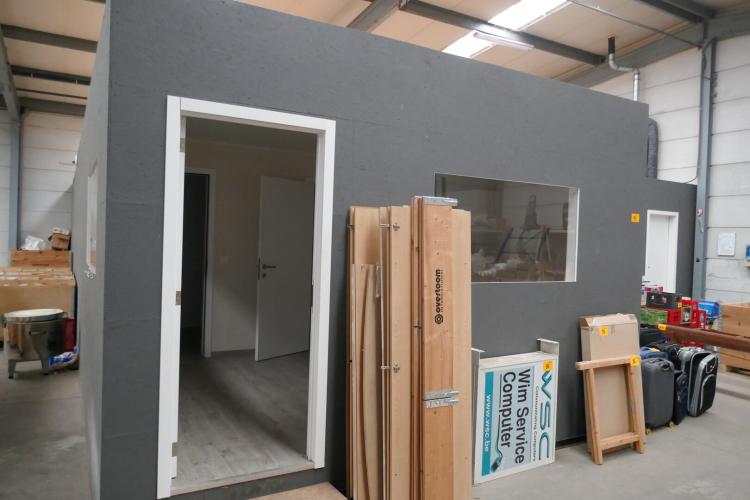 Compleet ingerichte bureel met verschillende ruimtes : keukenruimte met wc en douche - opbergruimte - kamer en wc - keukengedeelte - bureelruimte of loungeruimte