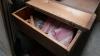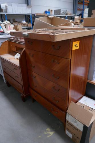 Vintage kastje met 6 laden - antieken bureautafel - vintage rekje met lepels - antieken schoolbankje - houten bijzettafeltje