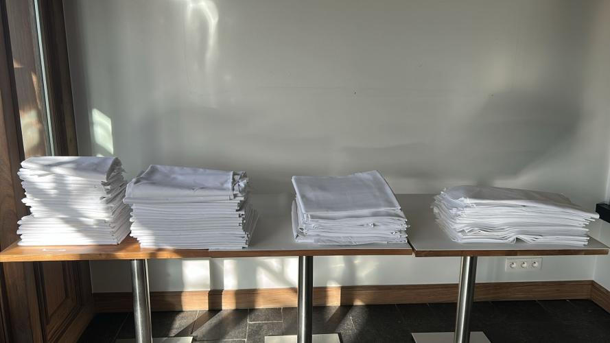 113 stuks in diverse formaten (formaat 80x80 en 80x120), wit, restaurantlinnen