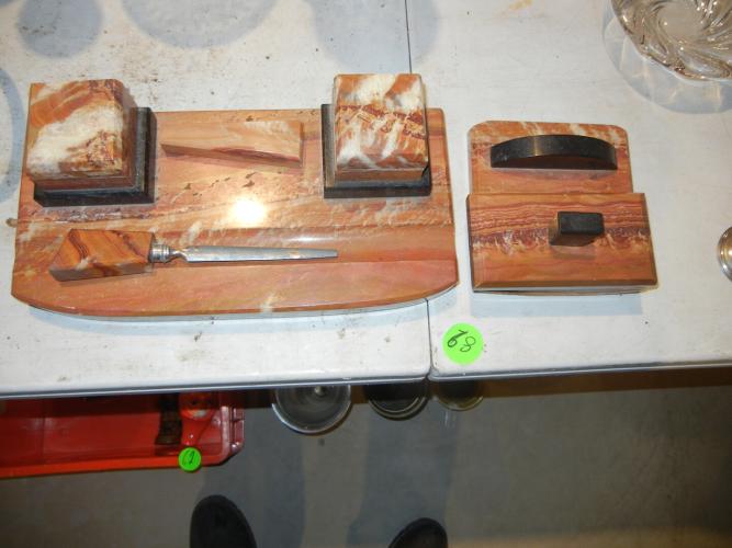 bureausetje in marmer (stempels + briefopenen er inkthouder)
