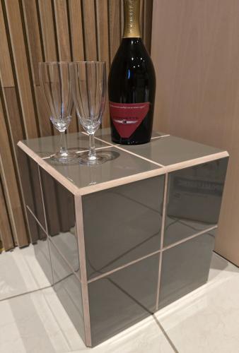 Design tegeltafel handmade 31x31x31H zandbruin met paarse voeg