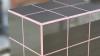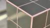 Prototype Design tegeltafel handmade 31x31x31H zandbruin met paarse voeg - !1 zijkant niet betegeld!