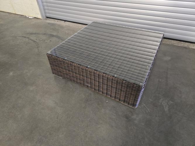 1x Salontafel rottan met glazen blad 105x105x35H