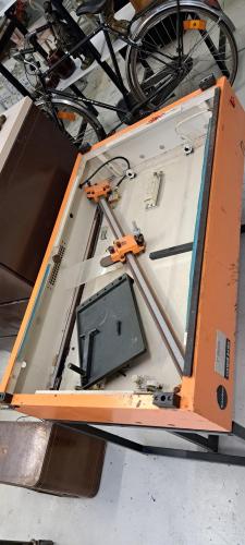 bacher met 16mm snijapperatuur. glasplaat beschadigd 110x70x80. BTW op marge