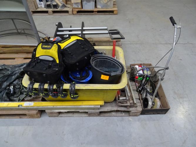 oa. lijnmarkeerder, metserskuip, spanvijzen, handgereedschap, waterpas, ...