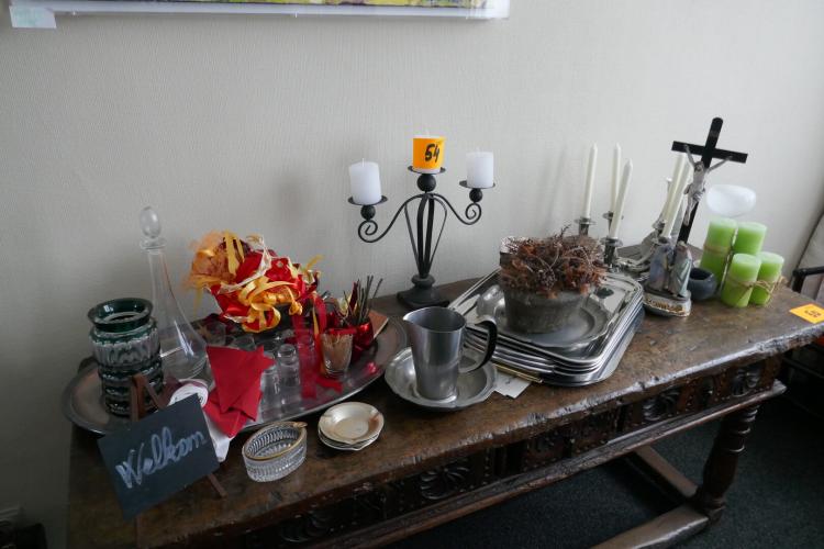 Kandelaar - opdienschalen - religieuze beelden - kaarsen - enz..