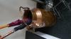 Koperen paraplubak - wijnflesrekje - vintage houten kistje - staander voor champagnefles