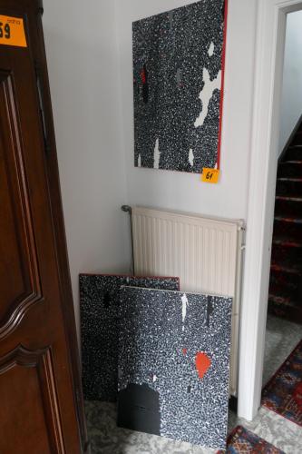 3 kunstwerken op canvas ( 1 stuk lichtjes beschadigd )