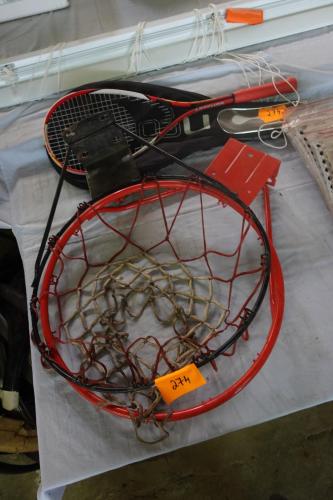 Lot met tennisraket en 2 basketringen