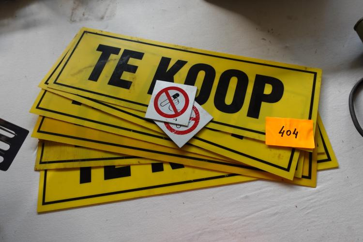 6 pickupborden 'TE KOOP' en 2 pickup plaatjes verboden te roken