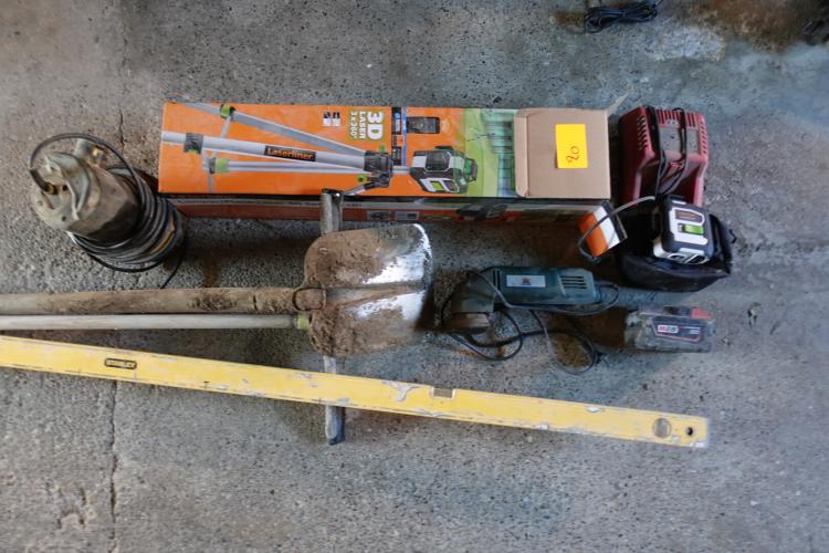 oa. laser, dompelpomp, schuurmachine, schop, ...