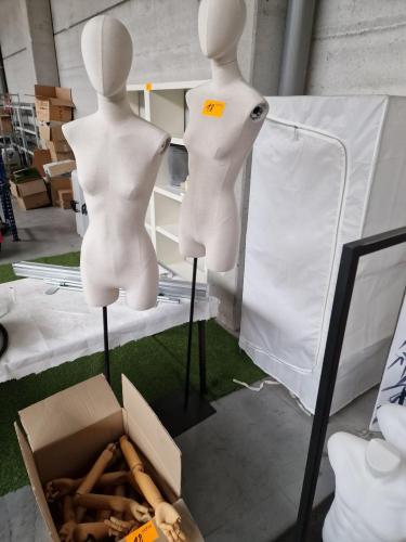 2 damesbustes op voet + kartondoos met diverse houten ledematen
