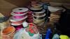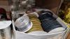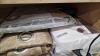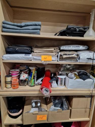 mooie partij inpakmaterialen (verpakkingslint, papier), diverse gordijnstoffen, spotlampen