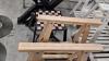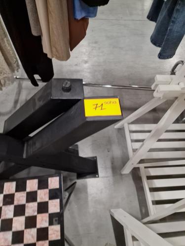 een paar X-vormige zware zwartmetalen tafelonderstellen, een paar zwartmetalen salontafelonderstellen en 2 naturelkleurige houten schragen