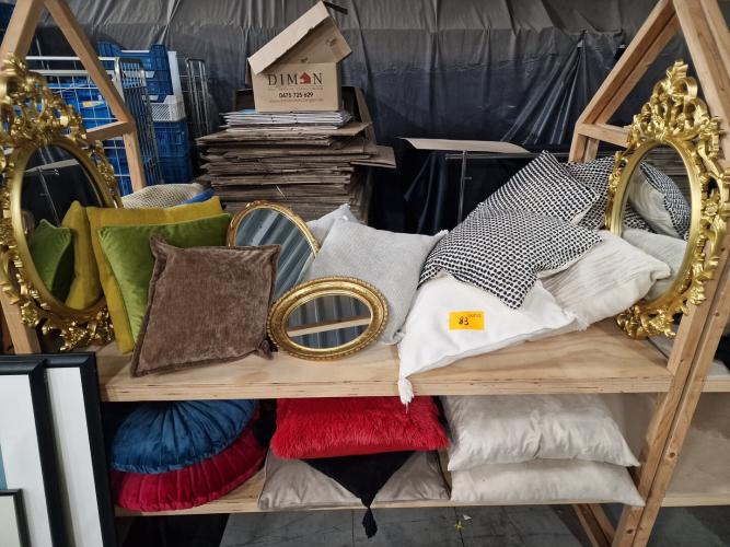 4-tal spiegels in goudkleurige kader + 20-tal sierkussens
