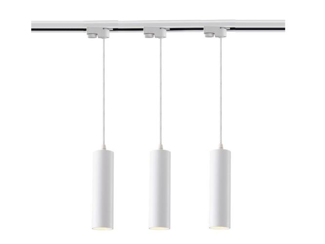12 x Railspot GU10 Decoratief Hanglamp cilinder 24cm - geschikt voor 1 fase 2 draad rail - afdichting IP20 - product kleur zand wit - afm Ø 55 x 240mm - materiaal aluminum - kabellengte 100cm - fitting GU10 - bulb en rail niet inbegrepen - een bulb invoer - max 50 watt - voltage 220-240V - SKU 00897