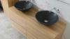 Badkamermeubel 130 cm - Licht hout decor + zwarte waskommen - Incl. muurkranen