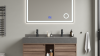 Voorzien van: Softclose lade systeem: 4 stevige metalen lades - Zwarte kranen inclusief pop-up drains (chrome) - Goudkleurige metalen handgrepen - Spiegel met: touchscreen LED-verlichting in 3 kleuren, dimbaar, digitale klok + thermometer, Bluetooth + speakers, anti-fog technologie, kopervrije spiegel - Voorgemonteerd wastafelmeubel.