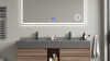 Voorzien van: Softclose lade systeem: 4 stevige metalen lades - Zwarte kranen inclusief pop-up drains (chrome) - Goudkleurige metalen handgrepen - Spiegel met: touchscreen LED-verlichting in 3 kleuren, dimbaar, digitale klok + thermometer, Bluetooth + speakers, anti-fog technologie, kopervrije spiegel - Voorgemonteerd wastafelmeubel.