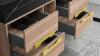 Voorzien van: Softclose lade systeem: 4 stevige metalen lades - Zwarte kranen inclusief pop-up drains (chrome) - Goudkleurige metalen handgrepen - Spiegel met: touchscreen LED-verlichting in 3 kleuren, dimbaar, digitale klok + thermometer, Bluetooth + speakers, anti-fog technologie, kopervrije spiegel - Voorgemonteerd wastafelmeubel.