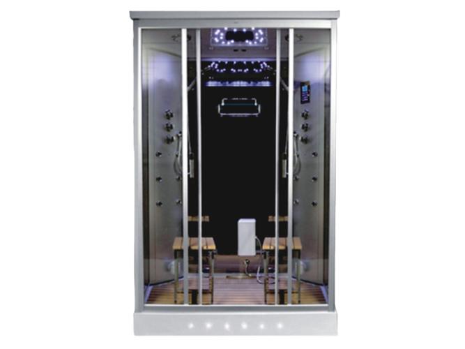 Voorzien van: ABS bodemplaat (zeer resistent tegen krassen, vlekken en breken) - Stoomgenerator - Helder veiligheidsglas - Uitgebreide Control Panel - FM-radio met speaker - Regendouche met LED-verlichting en temperatuur display - 2 Handdouches - Spiegelende glazen achterwand - Handdoekenrekje - Voetmassage - Twee waterdichte schuifdeuren - Ventilator - Cabine staat op verstelpoten die eenvoudig te stellen zijn in hoogte. let op: zonder stoeltjes en houtenvloer ter decoratie