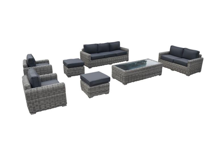 Loungeset 7-delig Bruin mix wicker / grijze kussens