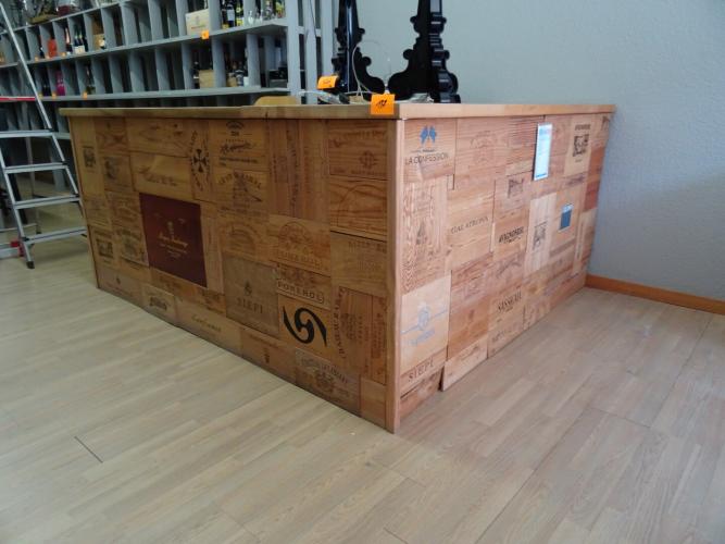 Houten kassameubel + 2 x barstoel