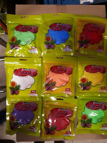 1 karton funny gummy klei 288 stuks (diverse kleuren) men kan figuurtjes maken of springballen blijft na drogen veerkrachtig (zie foto))winkel prijs 1,35 €