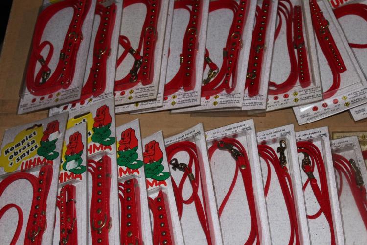 lot hals +leibandjes in doojes en lot losse + een paar eet of drinkbakken voo de hond