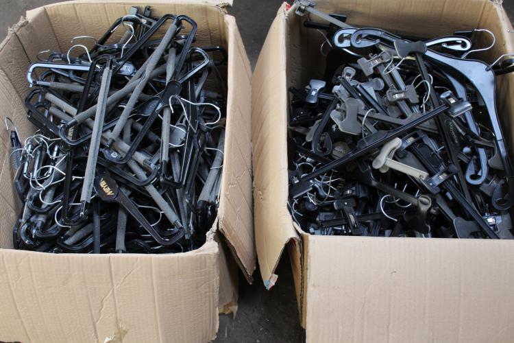 lot plastieken kleer hangers +broekknijpers liggend in 4 dozen