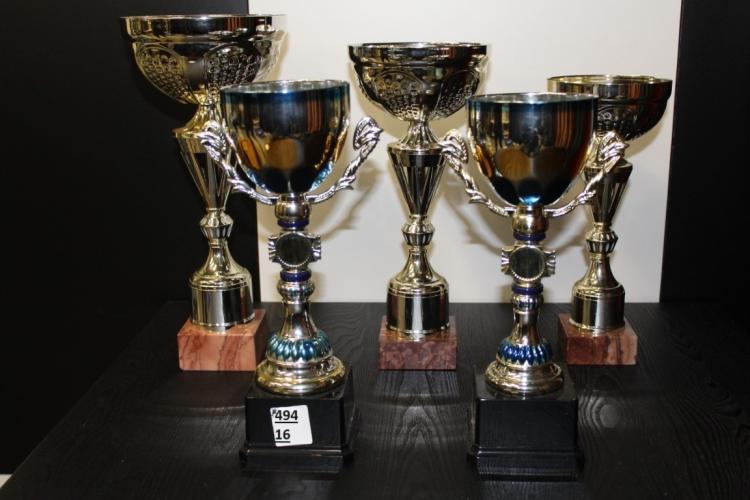 3+2 trofees hoogte 1x35cm-1x32cm-1x28cm + 1x30cm-1x29cm