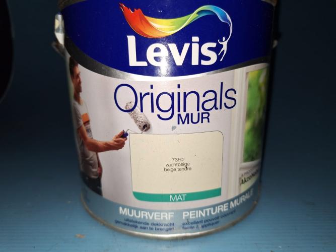 muurverf 2,5l soft satin merk ; levis winkelprijs 35 € kleur zachtbeige